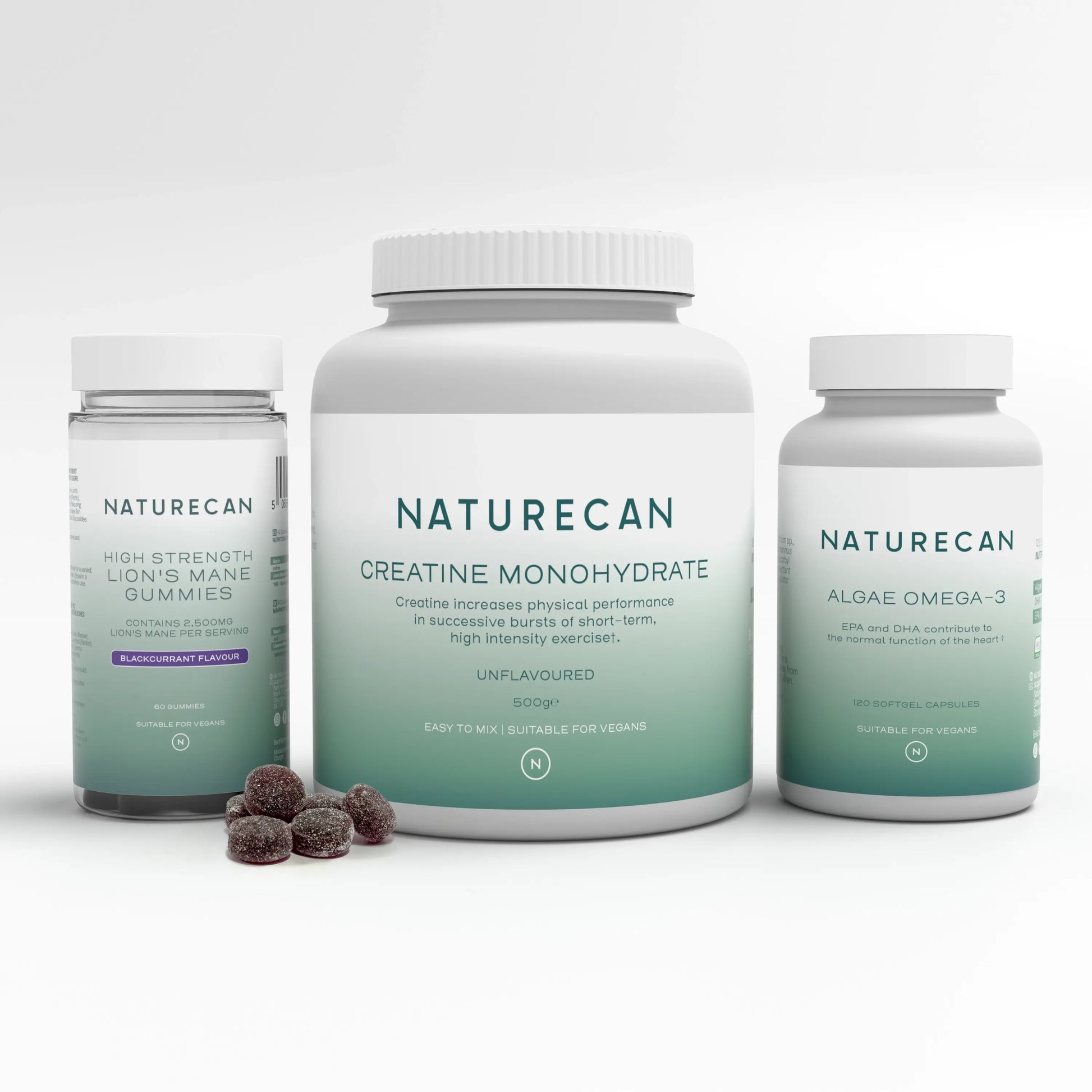 Die Kombination aus drei Produkten wurde bewusst so gewählt, dass sie sich in ihrer Wirkung ergänzen. Während Omega-3 die Gehirnfunktion unterstützt, fördert Lion’s Mane den Fokus und Creatin die zelluläre Energieversorgung – auch im Gehirn.