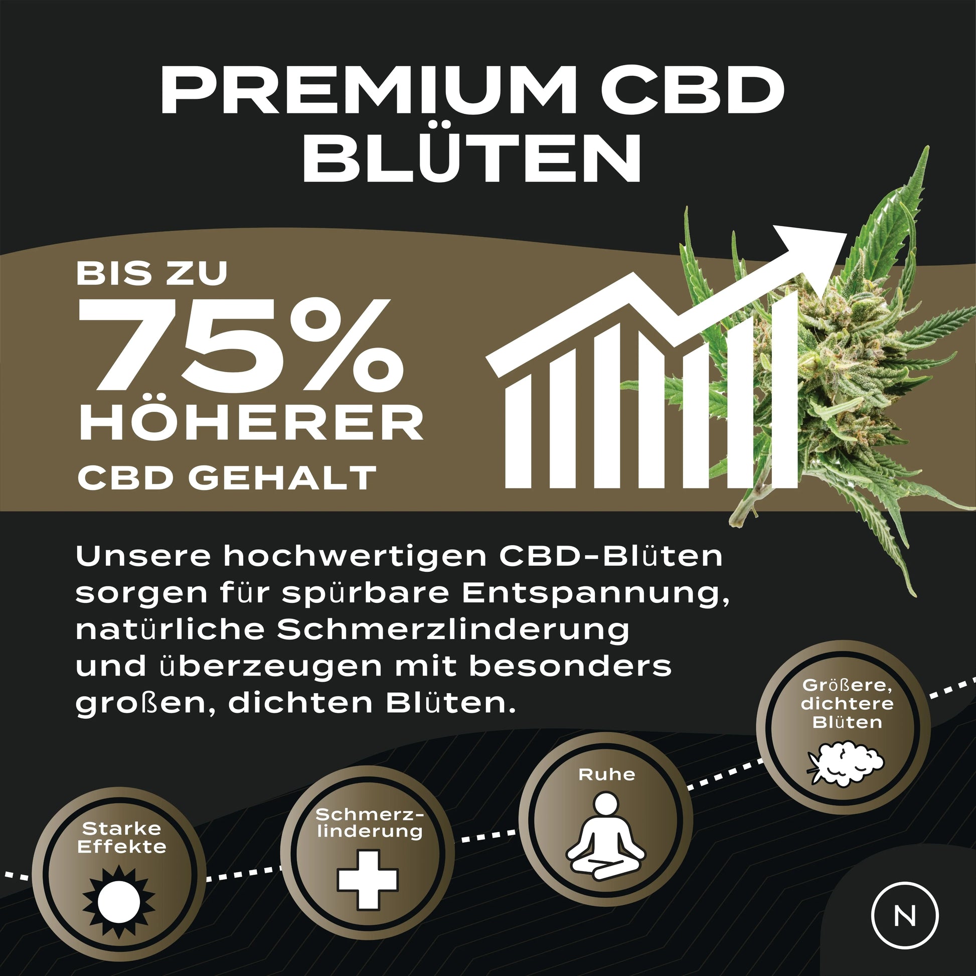 Diese fachmännisch kultivierte Blüte überzeugt mit einem süßen, bonbonartigen Aroma und vereint geschmacklichen Genuss mit den natürlichen Vorteilen von hochwertigem CBD. Ideal zum Entspannen nach einem langen Tag oder als Teil einer bewussten Ruhepause – Candy Kush sorgt für ein angenehmes, beruhigendes Erlebnis mit minimalem THC-Gehalt.