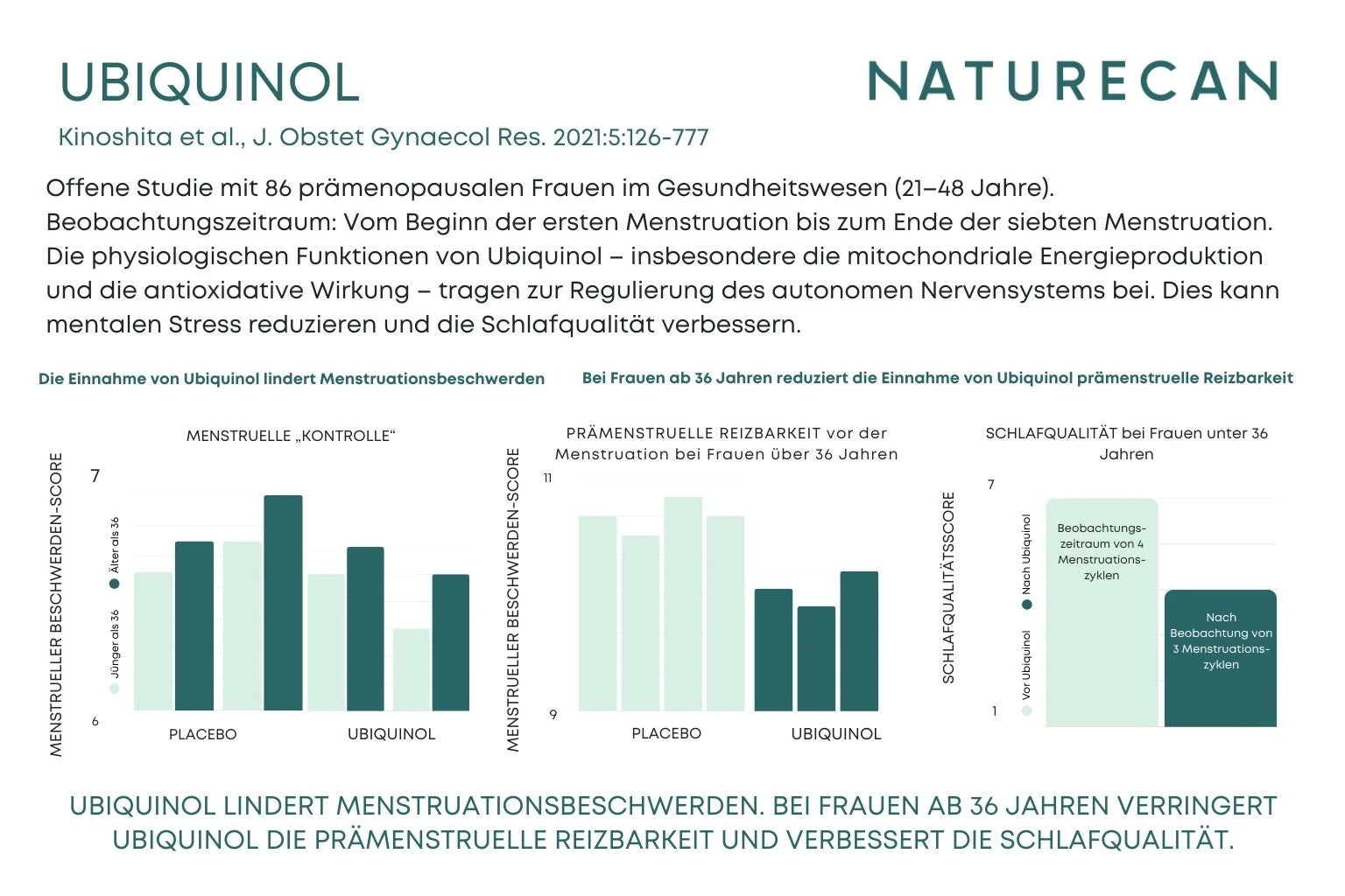 Eine aktuelle offene Pilotstudie mit 86 weiblichen Fachkräften aus dem Gesundheitswesen untersuchte die möglichen Vorteile einer täglichen Einnahme von 150 mg Ubiquinol – der aktiven und leicht vom Körper aufnehmbaren Form von CoQ10. Die Ergebnisse deuten darauf hin, dass Ubiquinol helfen kann, Menstruationsbeschwerden zu lindern und die Schlafqualität zu verbessern, insbesondere bei Frauen ab 36 Jahren.
