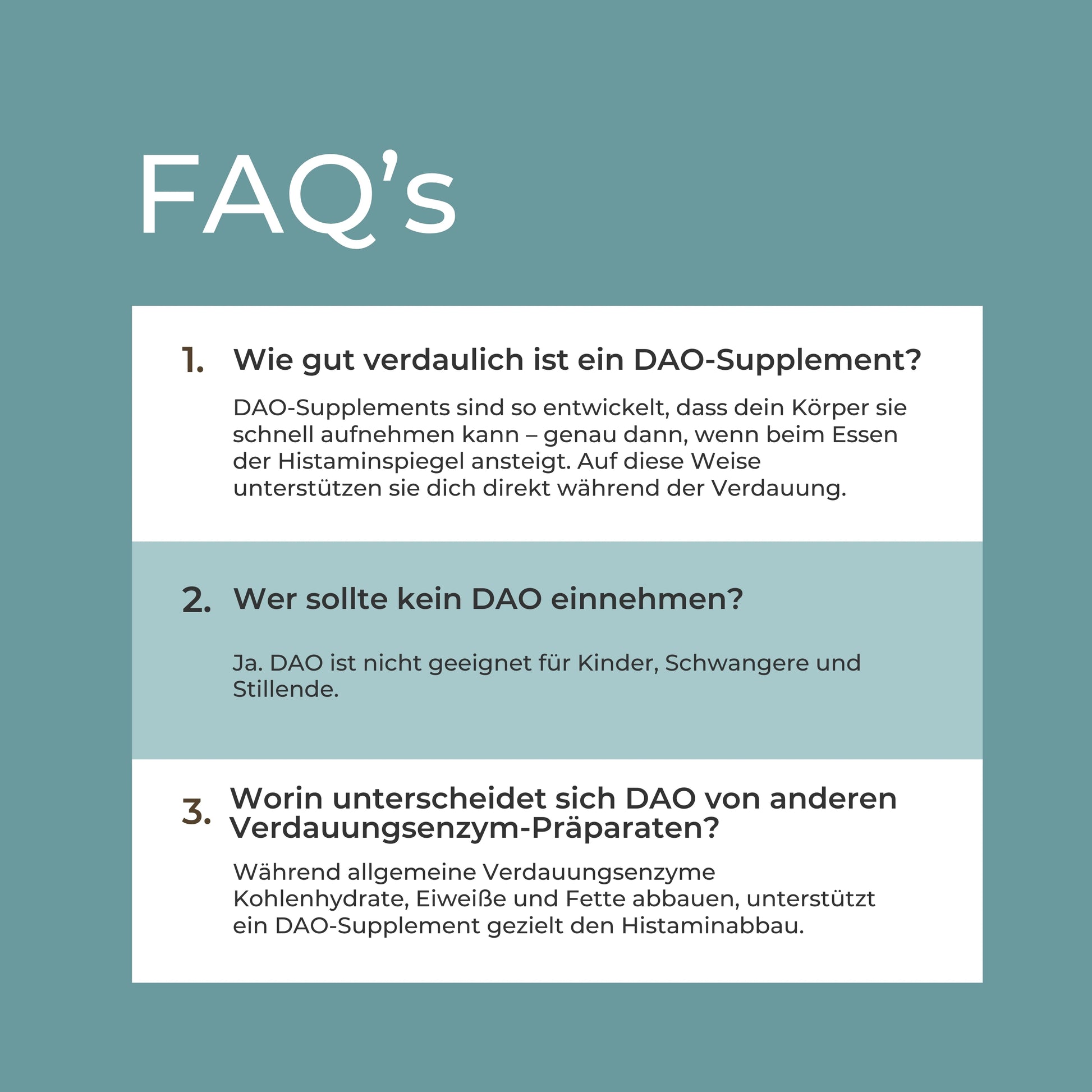 DAO (Diaminoxidase), Kapselhülle (Hydroxypropylmethylcellulose), Magnesiumstearat (Trennmittel)